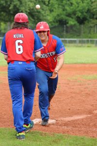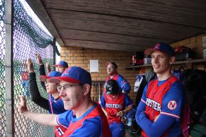 Die Strausberger Jungs wollten ihr Glück in der 1. Bundesliga versuchen, wir wünschten ihnen alles Gute und verabschiedeten uns wieder Richtung Heimat, um die einzig verbliebene Roosters Mannschaft zu verstärken. Wir starteten 1999 direkt in der Verbandsliga, holten zum dritten Mal den Meistertitel und sicherten uns einen Platz in der Regionalliga Nordost. Die Peanuts Damen erreichten einen beachtlichen vierten Platz in der Softball Verbandsliga Berlin Brandenburg. Das Jahr 2000 stand wieder ganz im Zeichen der Entwicklung und Erweiterung. Unser Mitgliederzuwachs erlaubte uns eine zweite Mannschaft in der Bezirksliga anzumelden. Wir sicherten uns mit einem vierten Platz den Verbleib in der Regionalliga. Das Frauenteam benannte sich in „Ravens“ um und erlebten ebenfalls einen starken Mitgliederzuwachs. 2001 startete das neue Jugendteam durch und belegte in der Jugendliga mit 8 Siegen und nur 3 Niederlagen einen tollen Platz 2. Auch die Ravens steigerten sich und beendeten die Saison auf Platz 6. Die zweite Mannschaft spielte eine ordentliche Landesliga Saison und erreichte die Playoffs. In der Regionalliga hieß es für uns unter allen Umständen die Klasse zu halten und das schafften wir mit 14 Siegen und 14 Niederlagen auch, was uns immerhin einen 4. Platz einbrachte. Wir waren stolz darauf zu sehen wie nachrückende Spieler sich unseren starken Teamgeist und die Liebe zum Baseball einverleibt hatten. Sie waren hungrig. Einige von ihnen spielten in beiden Mannschaften als sogenannte Springer und gaben wirklich alles für den Erfolg. Auch die Unterstützung durch unser Frauenteam beim Training und an Spieltagen war großartig und zeigte den starken Zusammenhalt der NSF Roosters/Ravens. Das gipfelte in der gemeinsamen Fahrt nach Köln zur Baseball EM. Dort fielen Alltagssorgen von uns ab, auf den Rängen feierten wir unseren Sport frenetisch, der Stadionsprecher lernte uns ganz schnell kennen. Wir empfehlen jedes Jahr solch eine ungezwungene Fahrt zu machen, sei es ein Baseballturnier bei befreundeten Vereinen oder eine Fahrt an die Ostsee ohne Baseball. Es hebt die Lebensfreude und löst Druck- und Stressknoten. Unter Freunden feiert es sich sowieso am besten.