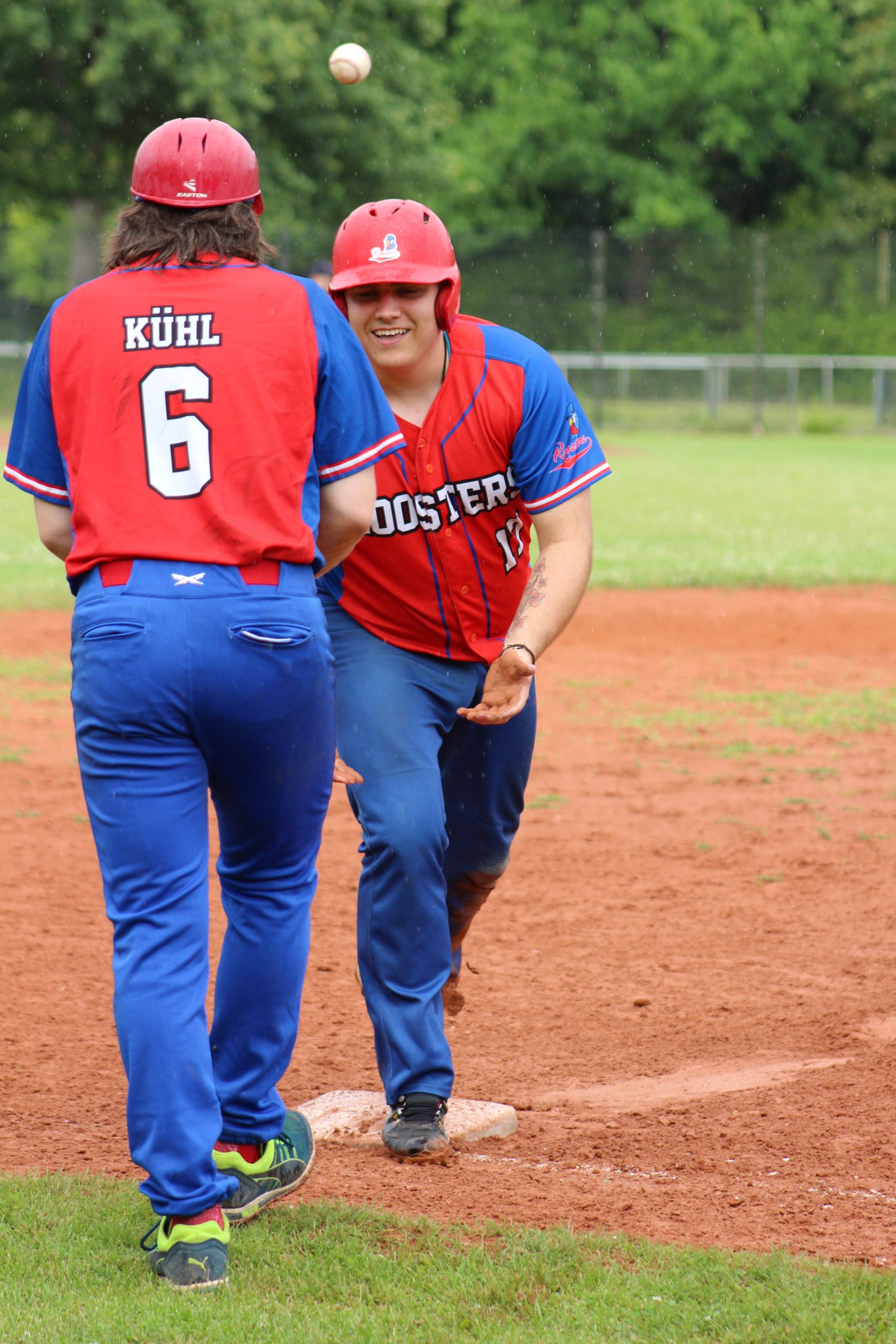 2002 waren wir wieder mit einer schlagkräftigen ersten Mannschaft am Start, die prompt den zweiten Regionalliga Titel der noch jungen Vereinsgeschichte holte. Nie werden wir diesen Sommer vergessen. Das Team war vereint, wir organisierten ein Sommerfest, grillten abends oft oder entspannten uns beim Golfen. Roosters- Fans standen bedingungslos hinter uns, auch die Ravens spielten wie entfesselt, kamen in die Play-Offs und ins Pokalfinale des BSVBB. Die Jugend Mannschaft wurde mit 8 Siegen und nur 3 Niederlagen wieder einmal Vize-Meister, mit kräftiger Unterstützung ihrer Eltern im Verein. Die zweite Mannschaft wurde mit 7 Siegen und 5 Niederlagen Dritter in der Landesliga. Wir wurden in diesem Jahr vom Verband reich beehrt. Vincent Eichmann wurde MVP (Most Valuable Player) der Jugend, Jesco Veisz erhielt die silberne Ehrennadel des Verbandes, Martin Schiefelbein die bronzene Ehrennadel und unser Verein erhielt den Jugend-Förder- Preis für die herausragende Jugendarbeit der Roosters und Ravens. Nach drei Jahren in der Regionalliga wollten wir wieder den Aufstieg in die 2. Bundesliga wagen, die mittlerweile stärker geworden war. Das erforderte vor allem gutes Sportmanagement und Sponsoren für die kostspieligen Auswärtsfahrten. Wir erweiterten und verstärkten unseren Kader, trainierten gewissenhaft und hart. Wir wollten wieder Bundesliga Luft schnuppern. Mutig gingen wir das Abenteuer an, es wehte ein ganz anderer Wind hier oben, wir gaben alles. Es wurde eine richtig feucht-fröhliche Aufsteiger Saison, nie steckten wir den Kopf in den Sand, obwohl es allen Grund dafür gab, nie gaben wir auf, immer blieben wir positiv. Wir erinnern uns heute noch sehr gern an diese Zeit. Wir beendeten die Saison mit nur 4 Siegen auf dem letzten Platz. Die zweite Mannschaft gab wieder einmal ihr Bestes und erreichte in der Landesliga die Play-Offs. In drei knappen Finalspielen gegen die Sluggers mussten wir passen. Die Ravens erkämpften sich die Teilnahme am Halbfinale der Softball Landesliga, somit waren sie und die zweite Mannschaft die erfolgreichsten im Jahr 2003.